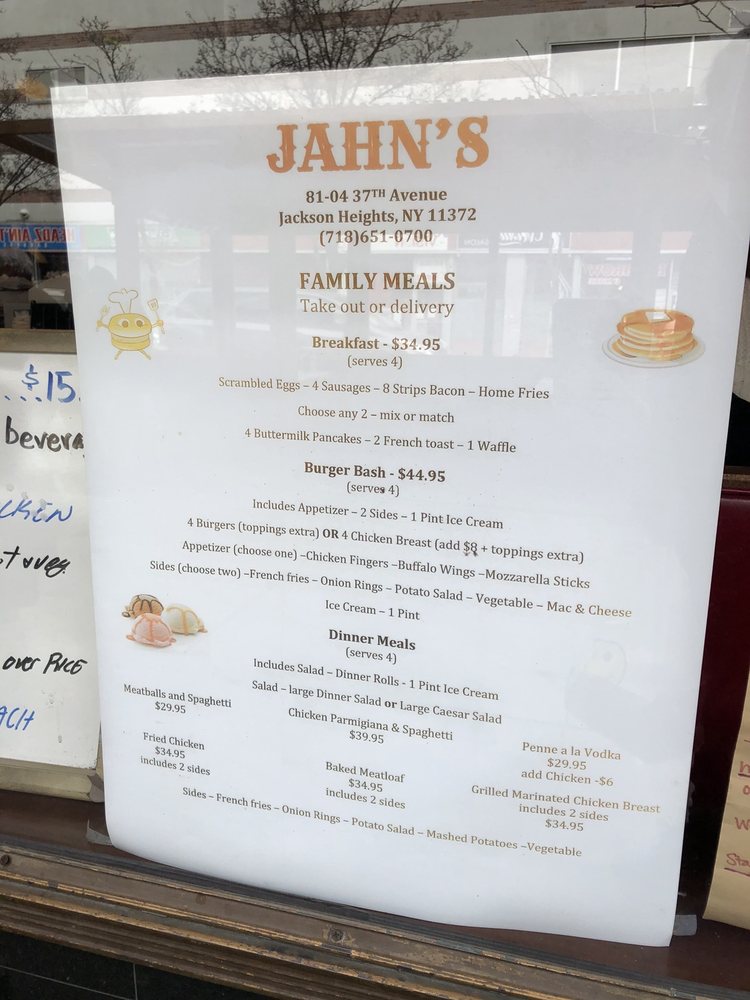Located in Jackson Heights, NY, Jahns Since 1897 is an iconic diner offering a nostalgic ambiance and a wide variety of options for breakfast and dessert. With over a century of history, this old-fashioned diner serves up classic dishes like omelettes, fresh eggs, and baked goods. The menu boasts traditional favorites such as American Cheese Omelette, Virginia Style Ham Steak and Egg, and Muffins with butter and jelly. Customers praise the friendly service and pocket-friendly prices. While some reviewers noted inconsistencies in service and food quality, the overall experience at Jahns Since 1897 is described as relaxing and enjoyable. If you're looking for a taste of history with a side of comfort food, this diner is worth a visit.